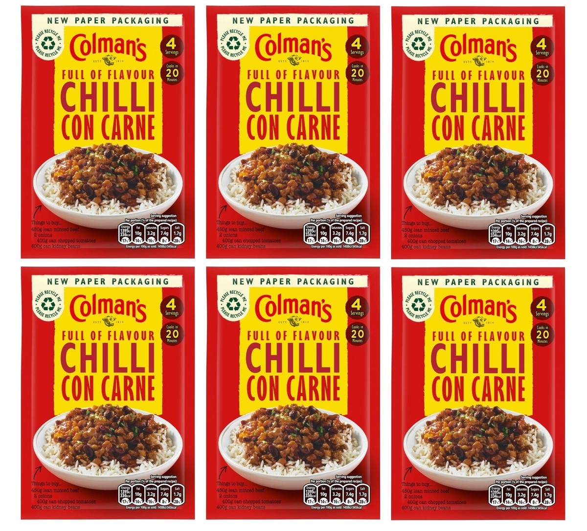 Colman’s Chilli Con Carne Recipe Mix (50g) is a convenient seasoning blend that allows you to quickly prepare a flavorful chilli con carne. This mix combines a carefully selected blend of spices and herbs, including paprika, cumin, cayenne pepper, and oregano, to create a rich and spicy dish. To prepare, simply brown your choice of minced meat, add the contents of the sachet along with water, and simmer until cooked through. The result is a hearty and satisfying meal that the whole family will enjoy. Each 50g sachet provides approximately four servings, making it an ideal choice for family dinners or gatherings. Whether you’re looking to enhance a comforting dish or add a flavorful twist to your favorite recipes, Colman’s Chilli Con Carne Recipe Mix offers a quick and delicious solution.
