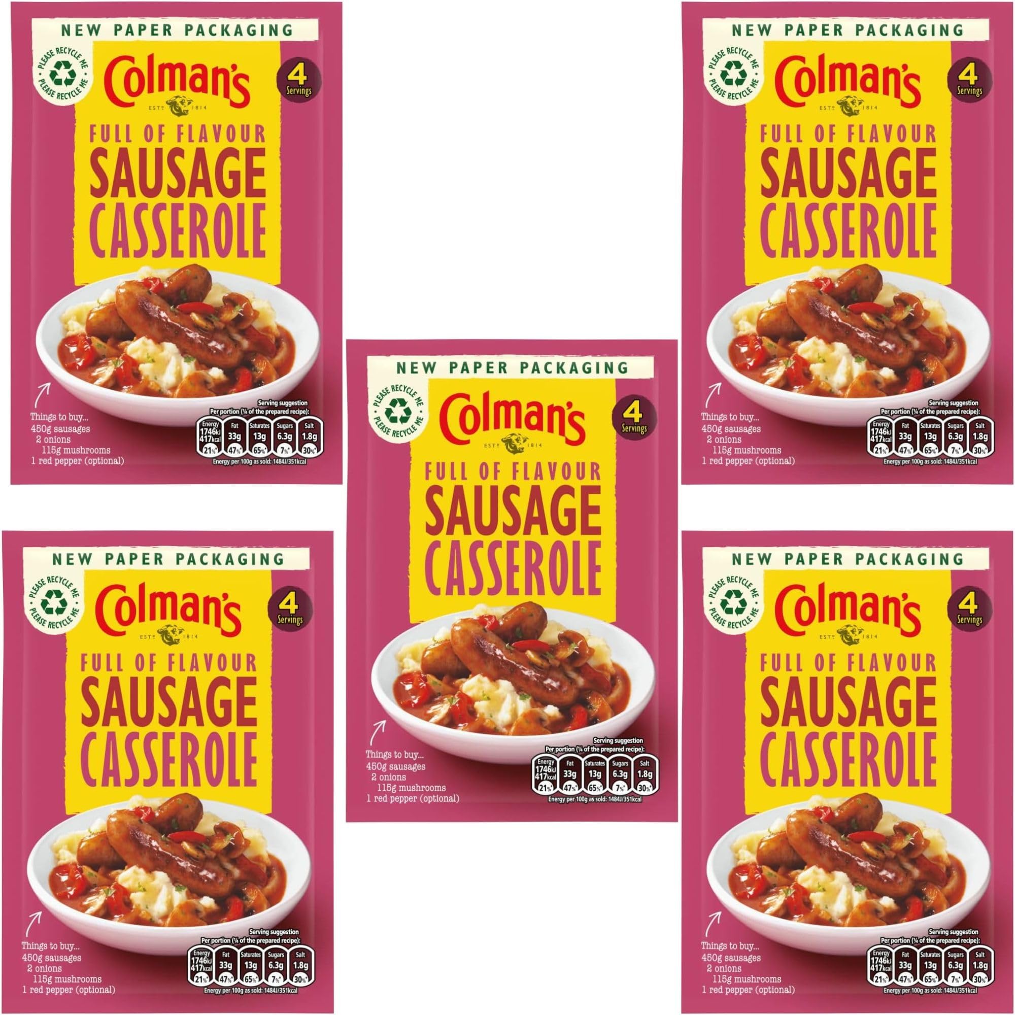 Colman’s Sausage Casserole Recipe Mix (39g) is a convenient seasoning blend designed to create a hearty and flavorful sausage casserole. This mix combines a rich blend of tomatoes and herbs, including sage, parsley, and marjoram, to transform simple ingredients into a comforting dish. Preparation is straightforward—simply add the contents of the sachet to your choice of sausages, along with water, and simmer until cooked through. The result is a savory and satisfying meal that the whole family will enjoy. Each 39g sachet provides approximately four servings, making it an ideal choice for family dinners or gatherings. Colman’s Sausage Casserole Recipe Mix is suitable for vegetarians and contains no artificial colors or preservatives, offering a quick and delicious solution for a classic casserole at home.