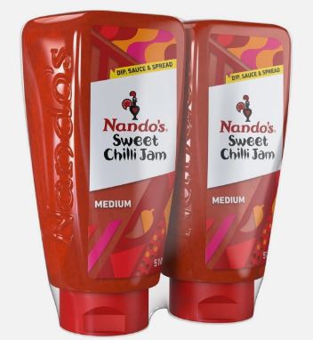 Nando’s Sweet Chilli Jam 2 x 510g offers a generous supply of the brand’s signature condiment, combining the tanginess of ripe tomatoes with the subtle heat of African Bird’s Eye Chilli. This medium-spiced jam is versatile, serving as a dip, spread, or glaze, enhancing everything from sandwiches and burgers to cheeses and roasted meats. Crafted without artificial colorants, flavorings, or preservatives, it caters to various dietary preferences, being suitable for vegetarians, vegans, and those seeking halal or kosher-certified products. The 2 x 510g pack ensures you have ample supply for multiple uses and occasions, making it a convenient addition to your pantry.