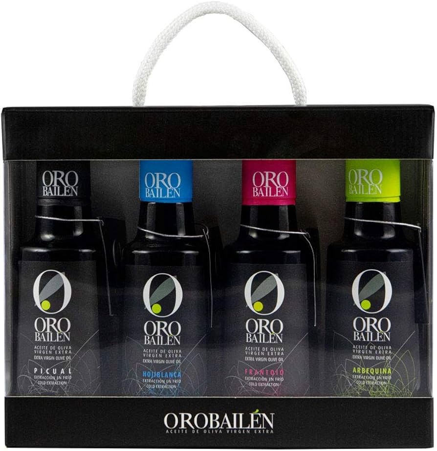 The Oro Bailen Extra Virgin Olive Oil Variety Pack includes four premium bottles of Spanish olive oil, each offering distinct flavour profiles ranging from fruity and delicate to robust and peppery. Cold-extracted to preserve aroma and nutritional quality, these oils are rich in antioxidants and healthy fats. Perfect for gourmet cooking, dipping, or finishing dishes, this variety pack allows food lovers to explore different olive oil intensities and pairings with salads, meats, vegetables, and breads.