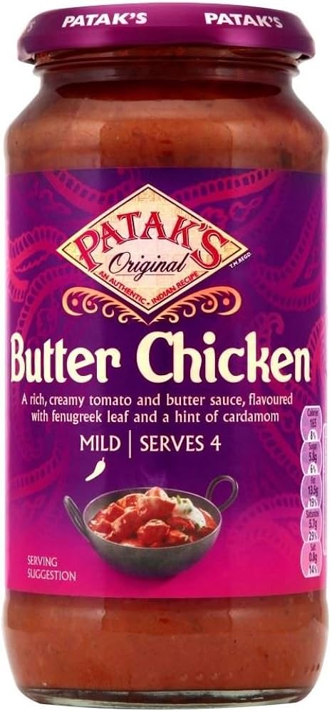 Patak’s Butter Chicken Cooking Sauce (450g) offers a rich and creamy curry experience inspired by traditional northern Indian cuisine. This mild sauce combines tomatoes, butter, and cream with a blend of aromatic spices, including fenugreek and green cardamom, to create a flavorful base for your butter chicken dish. Designed for convenience, it allows you to prepare an authentic-tasting curry by simply adding your choice of chicken or vegetables. Patak’s Butter Chicken Sauce is gluten-free and contains no artificial colors, flavors, or preservatives, making it suitable for vegetarians and those with dietary restrictions.